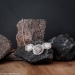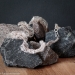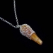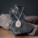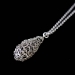Ketting, gehaakt van dun koper- en zilverdraad, met zilveren sluiting. Onderdeel van een set.