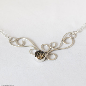 2017Halssieraad van zilver, met steen bestaande uit onyx, bladgoud en glas.