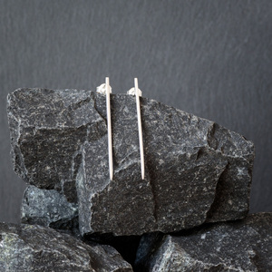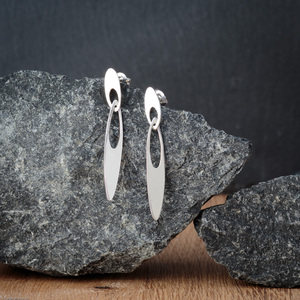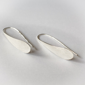 2025Oorhangers gesmeed zilveren staafje. Staafje is naar de uiteinden plat gesmeed. Staafje is 3,5 cm, incl oorhaken 5 cm.