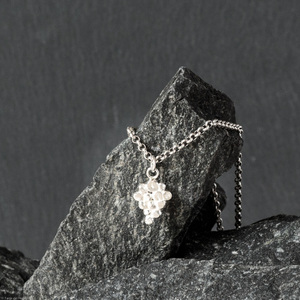 2023Hanger druiventros, gemakt van platgewalste bolletjes zilver. (Prijs is zonder koord/ketting)